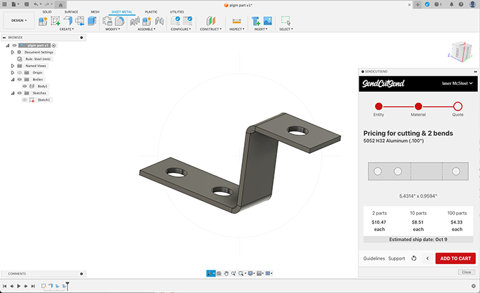 SendCutSend’s Autodesk Fusion plugin allows you to configure, get quotes, and order your parts directly through the app.