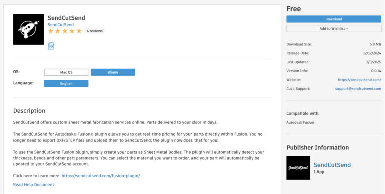 The SendCutSend Fusion plugin is 100% free to SendCutSend customers.