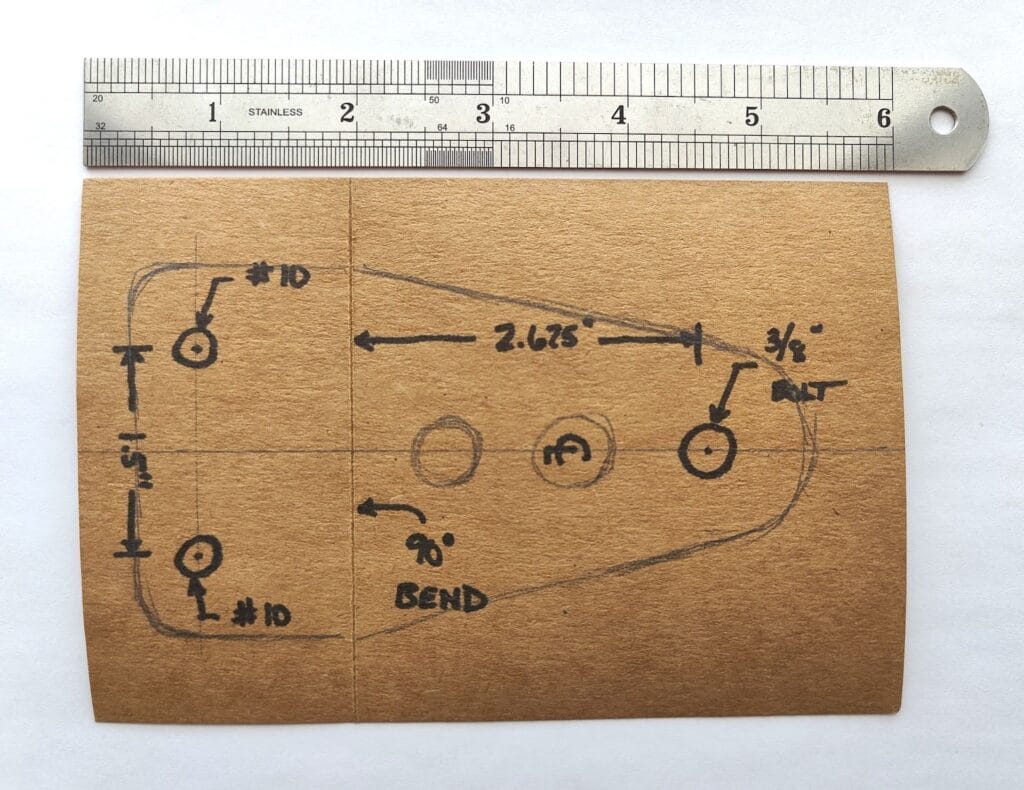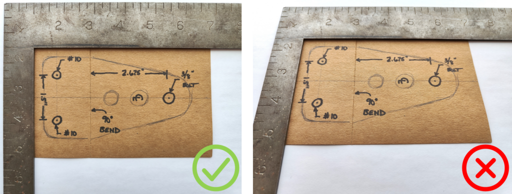 Don’t be afraid to include notes for reference. Directions and angles of bends, lengths of edges, distances between hole centers and hole diameters are all useful to have written right on the template.