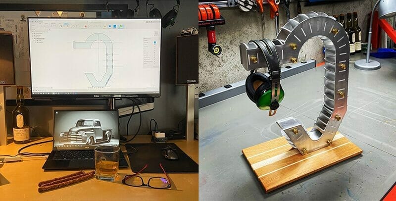 Aaron Jarry admits he’s “all over the place” in terms of manufacturing projects. “I enjoy building custom anything,” he said. “I’m in the kitchen right now making coffee and looking at all the cups and thermoses that I painted last week, and just yesterday, I finished making a custom coffee tray for my wife’s office.” He laughed. “Ever since I was a kid, I’ve loved doing weird stuff like that.”