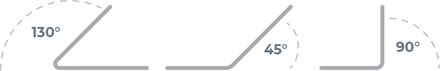 When designing and calling out your bend angles, it is important to note that the angles are measured on the outside of the bend. See the example below. The acute bend is measured as 130°, and the obtuse bend as 45°.