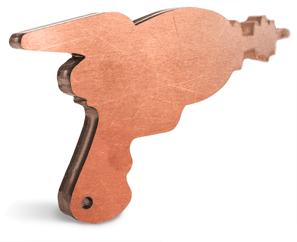 - Gouge: If scratches had a boss level… Not what you want to see on your laser cut parts. Our QC team usually catches and remakes parts with deep gouges that can be easily felt and that don’t get fixed by the deburring process, but if your part comes gouged, take a pic and let us know–we’ll remake it straightaway.