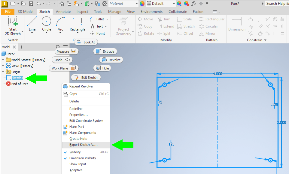 Exporting sketches to DXF