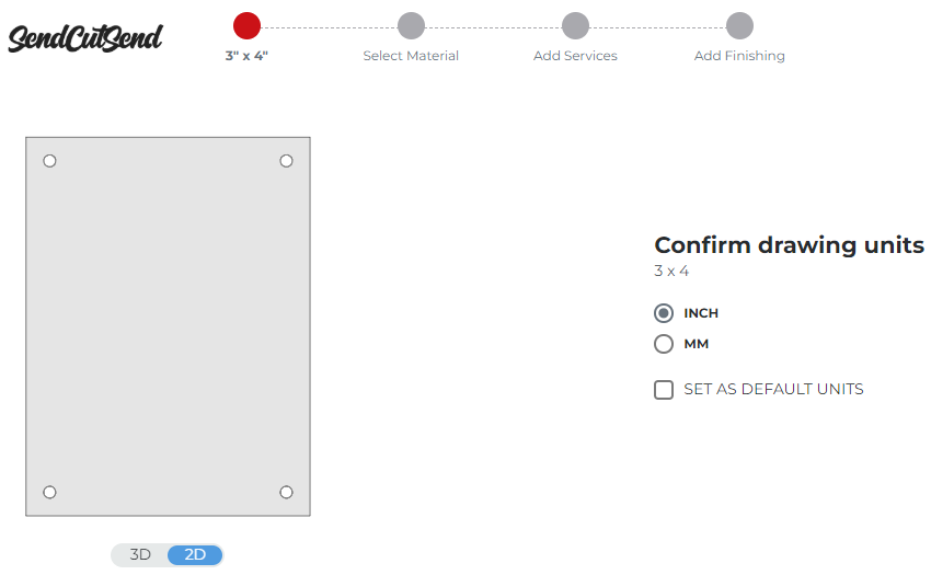 Please note: whether you design in inches or millimeters, our app will display overall flat (pre-bend) dimensions for STEP files in inches.