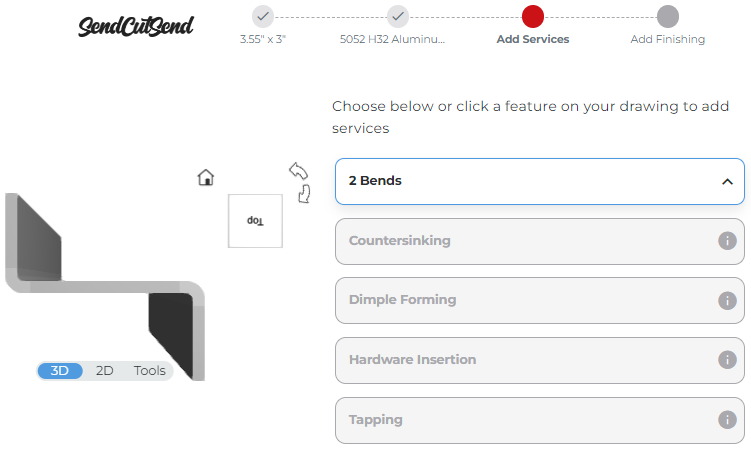 Our pricing system should automatically detect the bends you modeled, including the degree and direction for each. We recommend reviewing your part’s bend definitions at the Add Services step to ensure everything is correct before checking out!