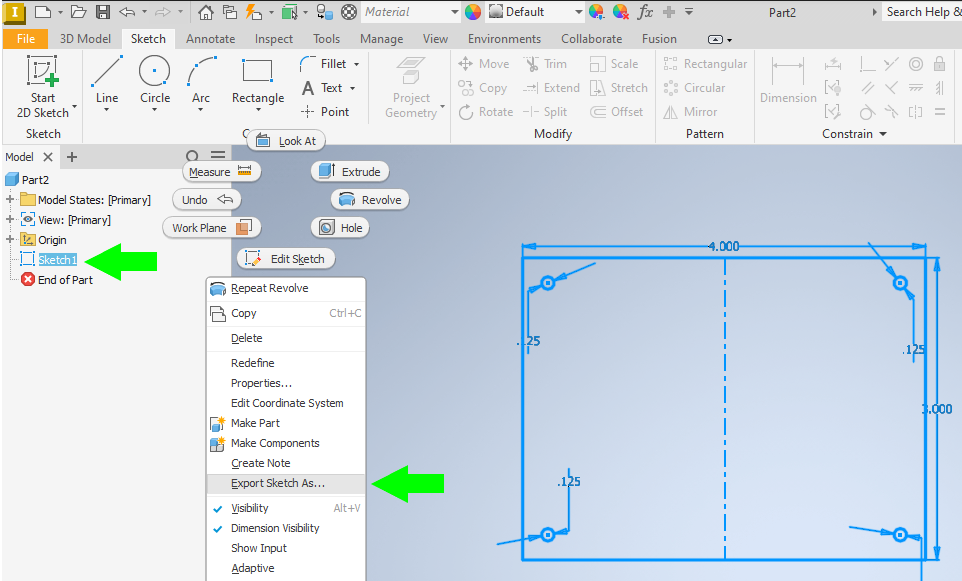 Exporting sketches to DXF