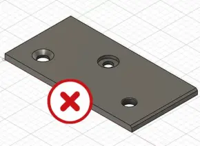 Sheet or plate parts that will be cut using one of our 2D cut methods (laser cutting, waterjet cutting, or CNC routing) should not have 3D features like counterbores or chamfers modeled.