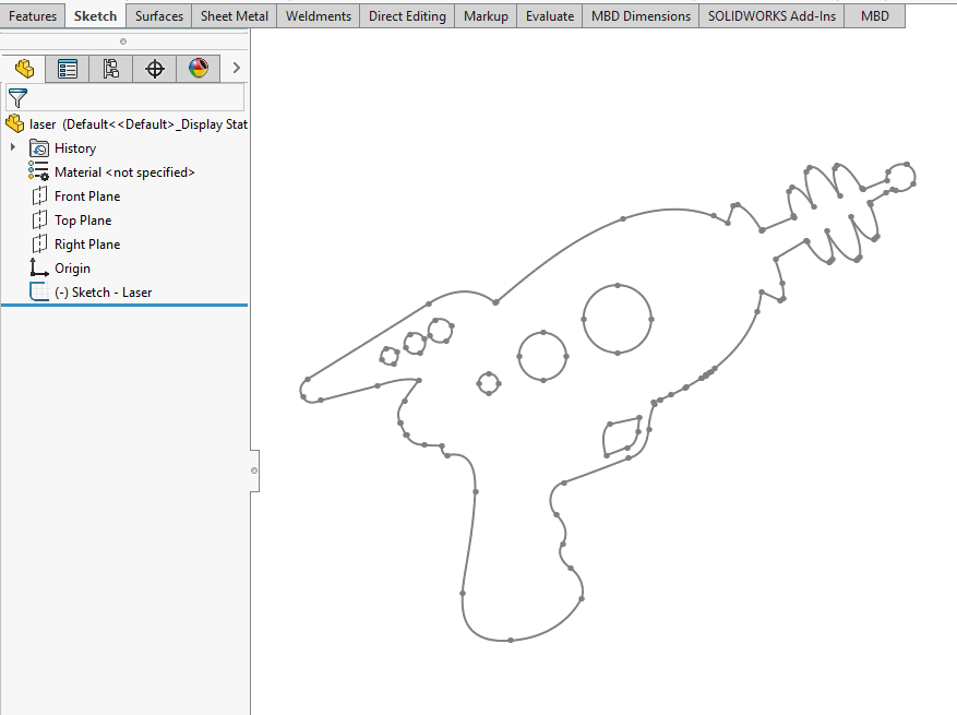 The key to exporting a sketch as a DXF is that the sketch should be the only active feature. If you’ve created a new sketch and that’s the only feature, then you’re good to continue. If you already got a part modeled and the sketch is part of it, you’ll want to copy the sketch to a new empty part.