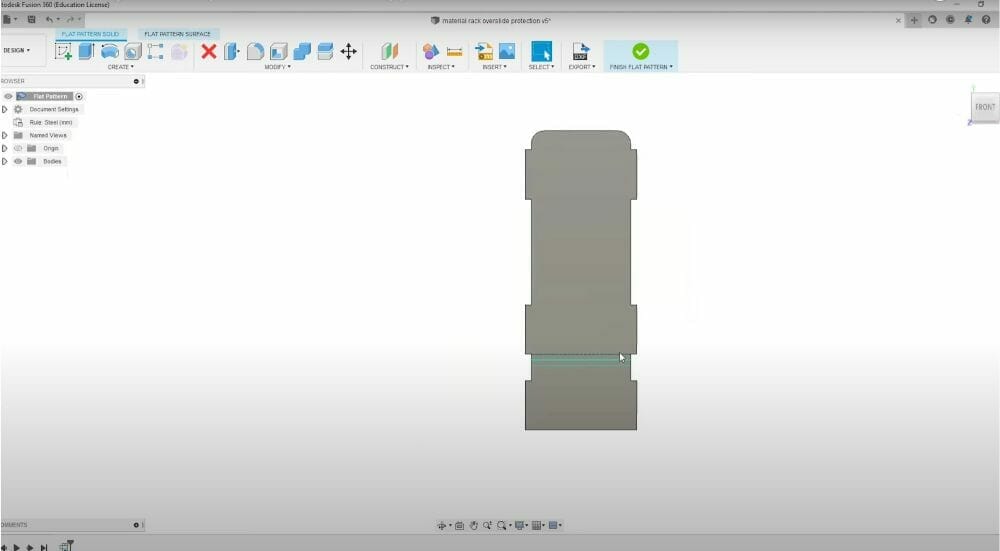 To export a DXF format file, you can create a flat pattern from a 3D model with flanges by clicking one of the faces and selecting the Flat Pattern feature. This automatically opens up your pattern and lays it flat for cutting on a laser, waterjet, or CNC router. The Flat Pattern feature also gives you bend lines.