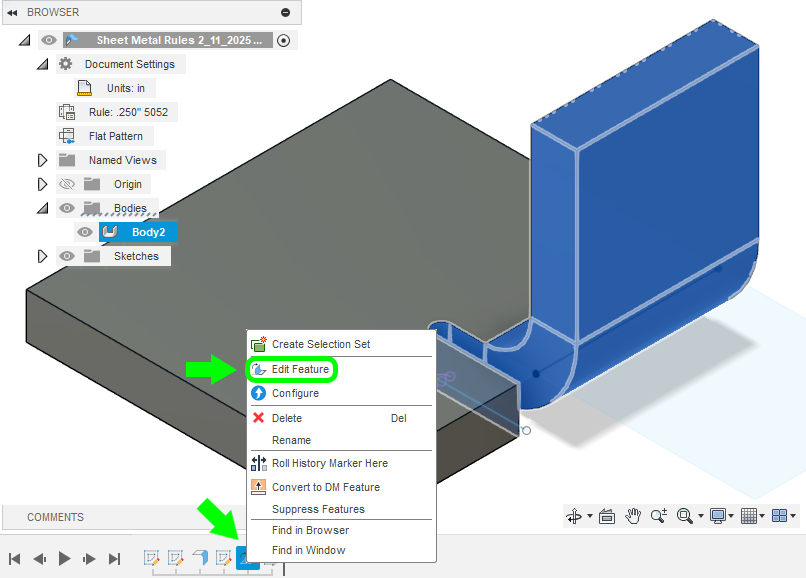 Tip: we strongly recommend downloading and importing our premade Fusion gauge tables so you can easily use our bending specifications (bend radius, K factor, and relief depth) for the material thickness you’re designing with! Our Fusion gauge tables allow you to import the right bending specifications with just a few clicks.