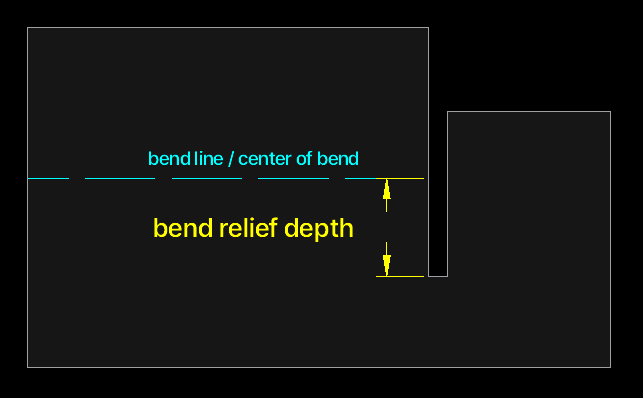 Depth: The depth of your relief should be at least the material thickness + the bend radius + .02” (0.5mm) measured from the bend line. That extra .02” provides just a little added clearance.