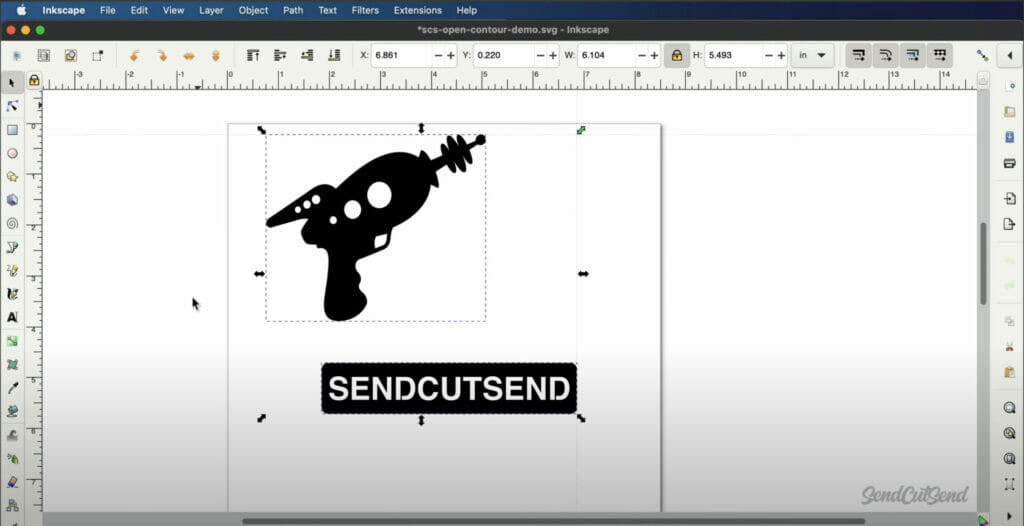 We can also use “Select All” to check that everything fits on the page. Saving the design will include only geometry on the page, so make sure there is sufficient room around the design. The size of your page will not matter once you upload your design to SendCutSend.