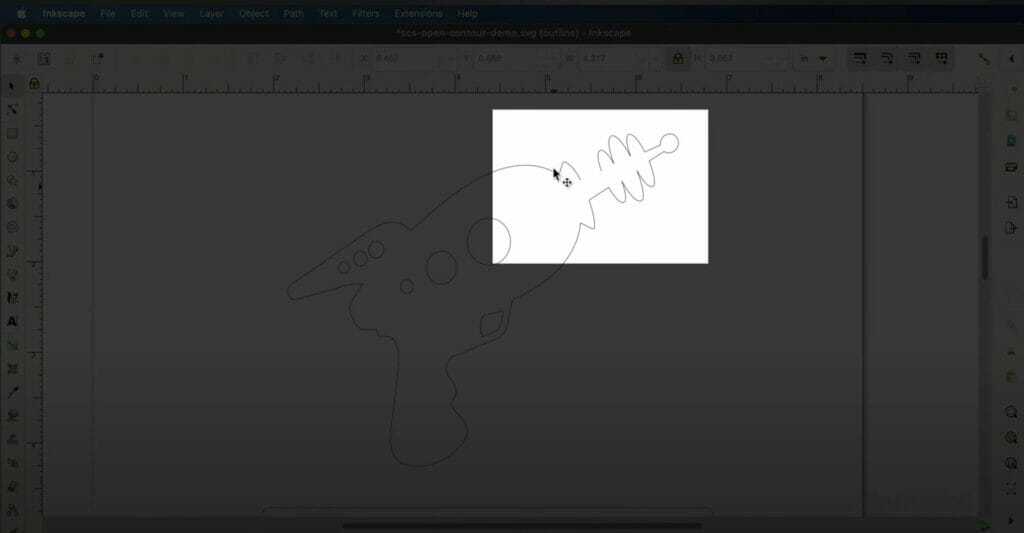 Inkscape does not offer a way to automatically find stray points. To help, you can go to edit > and use “Select All” to highlight everything in your design. If the selection box appears much larger than your part, be sure to delete any unnecessary points or geometry.