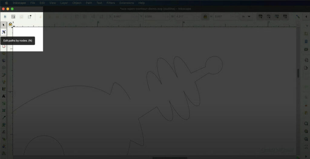 To do this, use the tool titled “Edit paths by nodes.” You can also use the keyboard shortcut letter “N.”