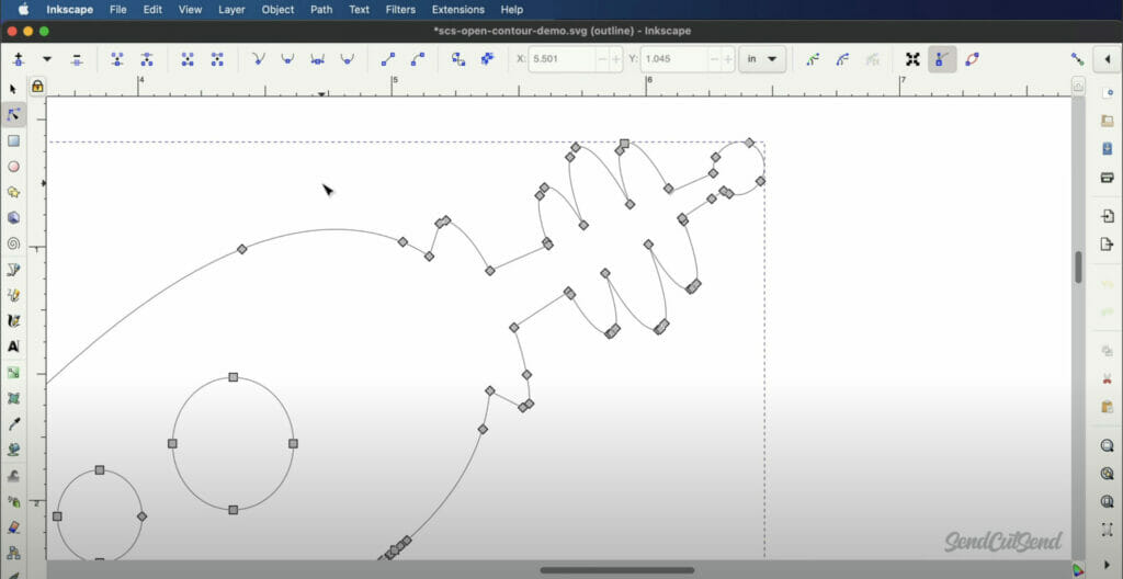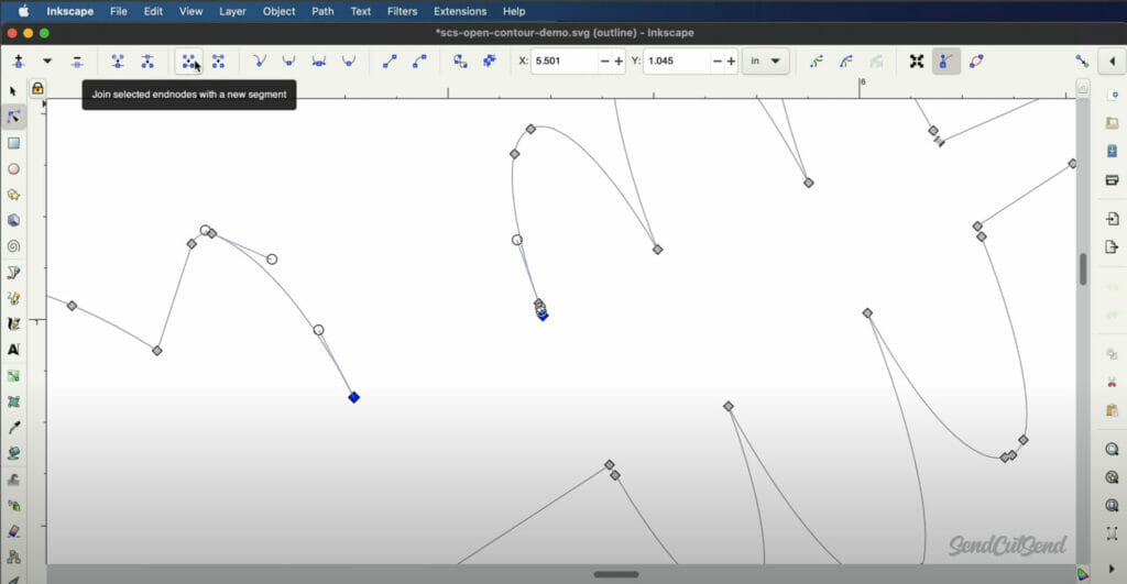 Then, select the button to “Join Selected End Nodes with new segment.” This contour is now fully closed and ready for the laser cutter.