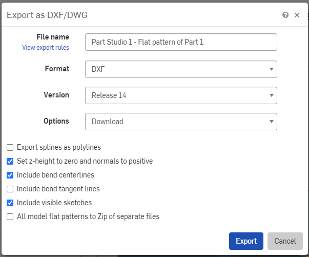 Exporting bent sheet metal designs in Onshape