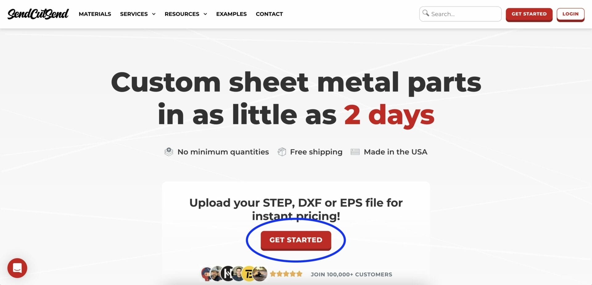 Head to www.sendcutsend.com and select “Get Started.”