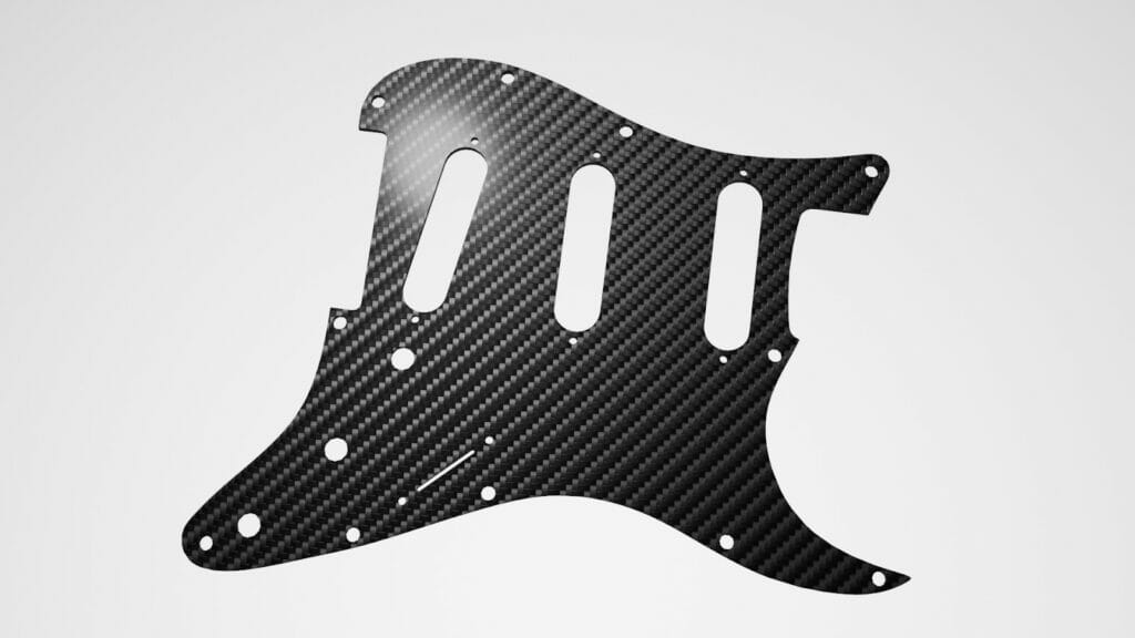 The cosmetic appearance of carbon fiber alone can justify its use. The gray and black diagonal pattern can give a design an industrial and modern look. A carbon fiber piece can act as an accent to a larger design. For example, a carbon fiber pickguard for an electric guitar acts as an excellent shielding material while also giving a completely different look.
