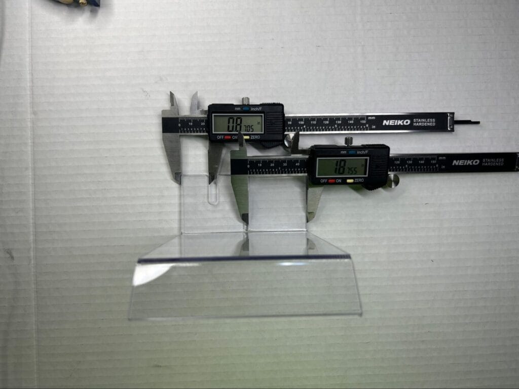 The polycarbonate (aka Lexan®) shown above is well within the stated CNC routing tolerance of +/-0.005” with the left measurement being 0.003” oversized, and the right measurement being within 1 thou.