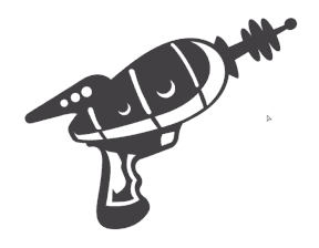 The example above was pretty simple because I had already made use of the “exclude” tool. Now is a good time to talk about using this. The “division” and “exclude” tools let you reverse one shape out of another while making it all one object. For this example we’ll just look at the laser gun in our design.