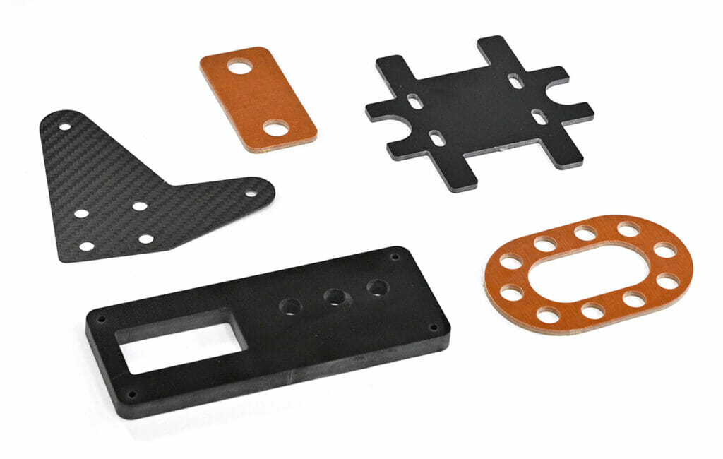 Ordering parts is easy through SendCutSend’s online instant pricing platform. When an order is placed, the company will choose the best possible cutting technology for the parts. Since materials behave differently during the machining process, they consider the type of material, material thickness, project complexity, and cost when determining to cut parts on the waterjet, fiber laser, or CNC router. Typically, thick metals and composites are better suited for waterjet cutting.