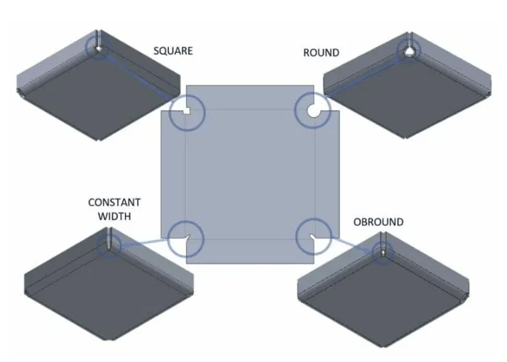 Our bend relief guide shows multiple examples of corner relief styles you can draw.