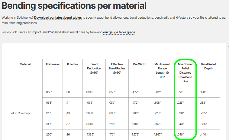 Pro tip: our Min Corner Relief Distance from Bend Line spec is calculated as follows: