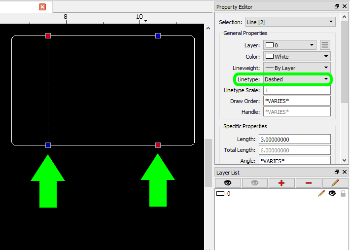 Then, you can use QCAD’s Line Tools (keyboard shortcut WL) to draw your notches, and the cursor tool to readjust the paths that make up your part’s profile.