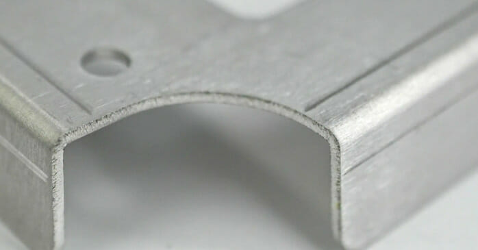 If cut features fall within the die width of our press brake, they can be distorted (as seen in the left photo above.)