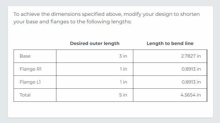We strongly recommend using our Sheet Metal Bending Calculator to check that your flat pattern’s dimensions will result in the formed dimensions you need – especially if you designed your part in 2D.