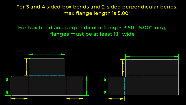 We have specific flange length and width requirements for perpendicular flanges that meet at a corner. Learn more in our box bend writeup!