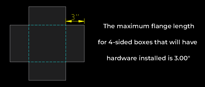 For hardware mount holes located on flanges, you can confirm the maximum 4 sided box flange height by finding the Max 4 sided box flange height (hardware) value in the material’s Design Considerations.