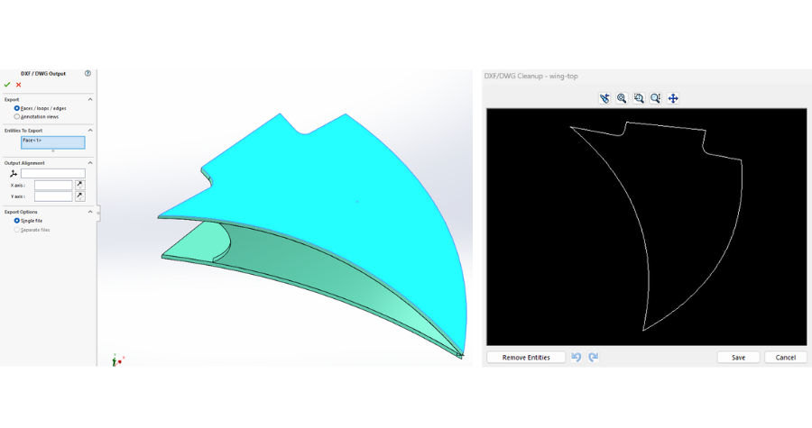- Export each face as a .DXF file (i.e. the faces to be cut)