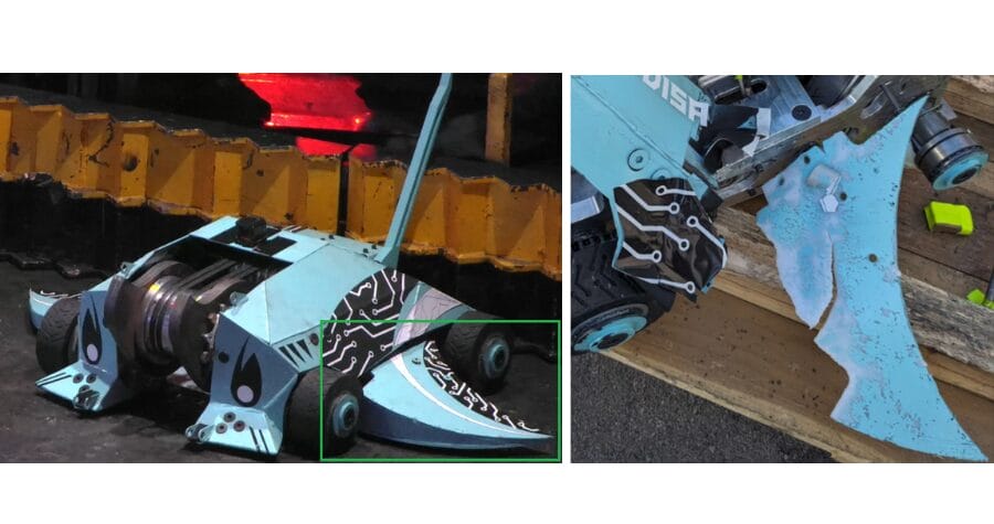 Against our first few opponents, the panels performed exactly as intended. They absorbed hits and kept the chains and chassis safe, all while being well under the weight requirement. But then we faced a seasoned BattleBots veteran… and everything changed.
