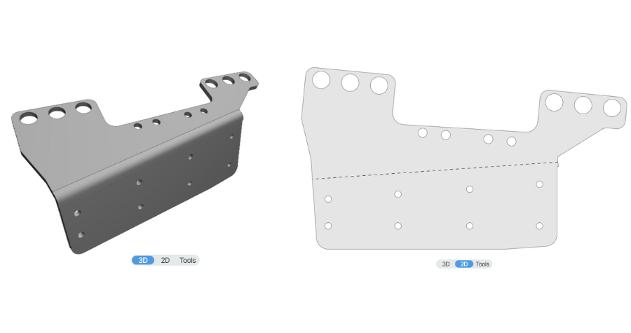 The quote tool even includes interactive 2D and 3D viewers, making it easy to inspect each piece before ordering. We could verify every tab, bend, and hole location right there in the browser.