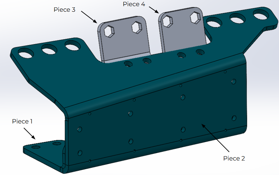 To streamline everything, the team kept the lightweight, cost-effective aluminum material but completely eliminated welding. Instead, we redesigned the side tacos around SendCutSend’s precision bending services, turning what used to be a complex welded assembly into a modular, bolt-together solution.