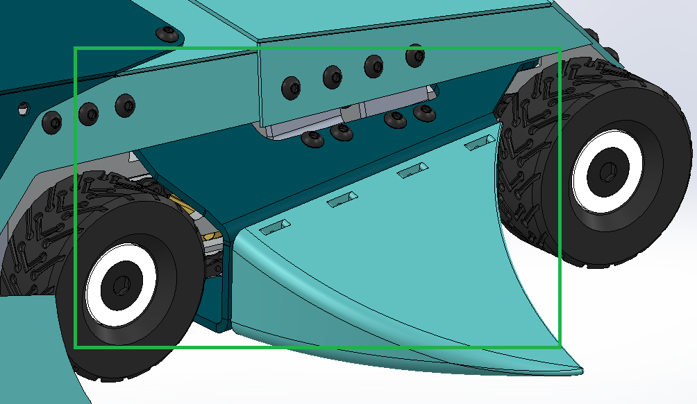 Although it felt counterintuitive at first to replace the steel with aluminum and expect better results, this design focused on controlling a failure rather than trying to prevent it. The team knew that one specific spot would likely only get hit once or twice in a 3-minute match and we were willing to let the aluminum shear away as long as it protected the core components behind it.