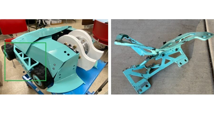 However, the welding manufacturing step still posed challenges. These side tacos took time to fabricate, and with tight match schedules, welds became potential failure points. Making spares quickly wasn’t easy, especially with limited resources while the team was at a competition.