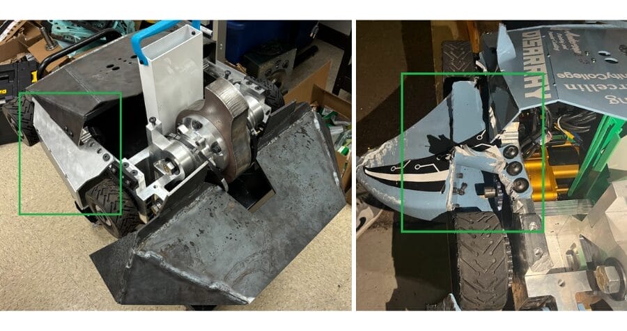 Against our first few opponents, the panels performed exactly as intended. They absorbed hits and kept the chains and chassis safe, all while being well under the weight requirement. But then we faced a seasoned BattleBots veteran… and everything changed.