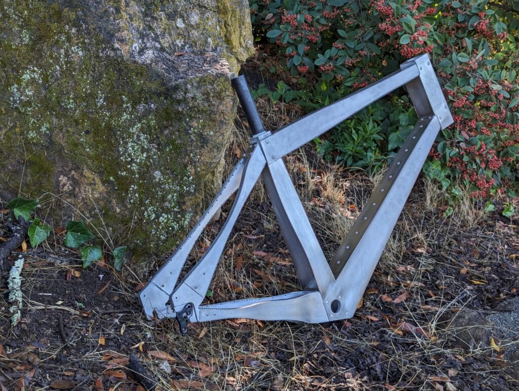This first frame proved the technology. “He had built a fully functional, ultra-lightweight bike,” Rob shared. “It became the testing ground for our unique sheet-metal folding technique, while letting Andy work on something he loves.”