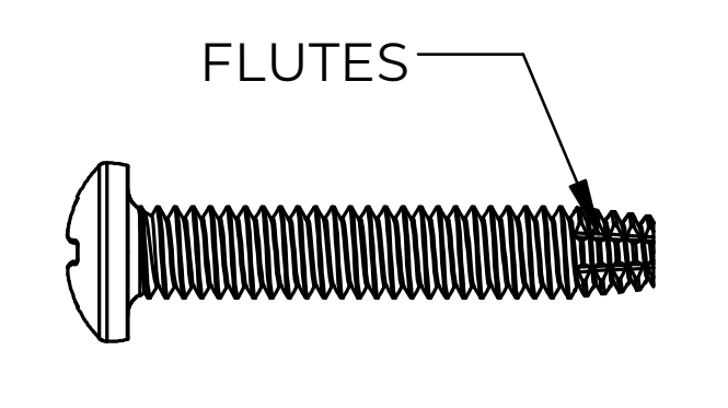 You can think of a self-tapping screw as a combination of a tap and a screw. The top shares all the features of a standard screw and the tip works like a tap. Some self-tapping screws will cut threads, they typically have flutes at the tip for clearing chips. There are also thread forming self-tapping screws which will create threads by deforming the material rather than cutting.