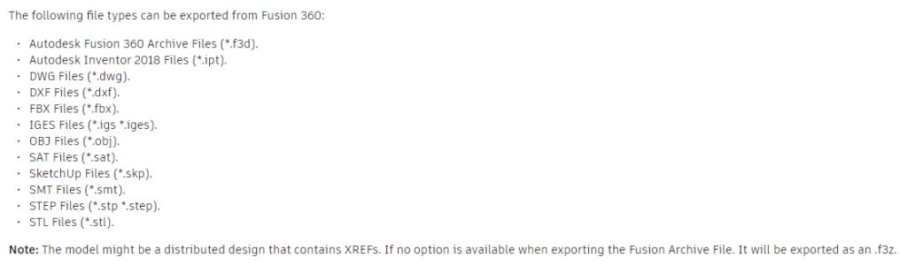 Autodesk Fusion exportable file types: