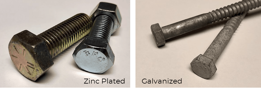 Because zinc is a sacrificial layer, giving itself up to corrosion to protect the base material, it can last much longer when it’s a thicker layer. The problem with having too thick a layer is that parts won’t fit together correctly. This is one reason zinc plating is so widely used on fasteners. Typical thicknesses for zinc plating are around .0002” vs something like powder coat which is significantly thicker. You won’t find any powder coated bolts.