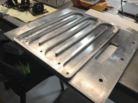 Beneath the inverter is an innovative approach to housing a cooling hose. It consists of several sandwiched metal plates – one plate has been cut precisely to snake a hose through it.