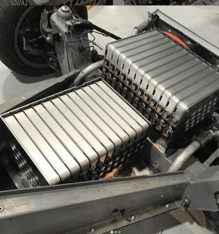 Next, he cut housing to fit the 48 battery modules – 24 up front and 24 in the back.