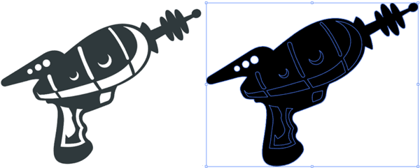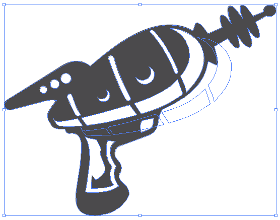 The example above was pretty simple because I had already made use of the “exclude” tool, so we still need to learn how to exclude objects for laser cutting. The exclude tool lets you reverse one shape out of another while making it all one object. For this example we’ll just look at the laser gun.
