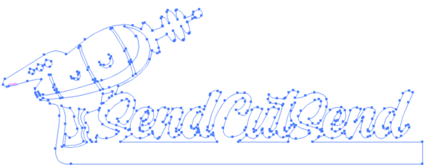 We will start with how to combine and unite objects for laser cutting, which is best shown by example. Let’s pretend you’re me and you want your logo cut out on a nice little stand. You’d start with something like this: