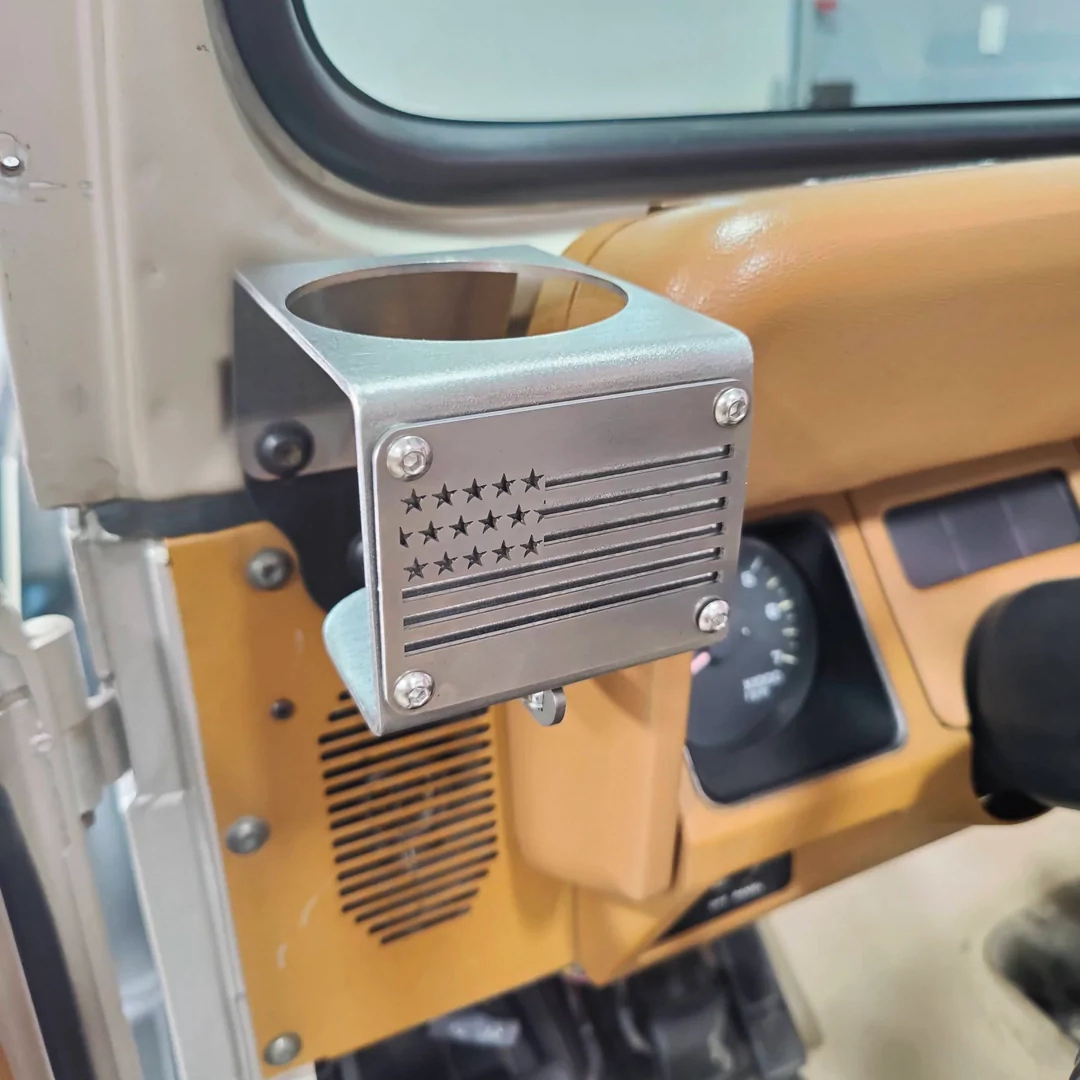 Beverage holder for Jeep Wrangler YJ owners.