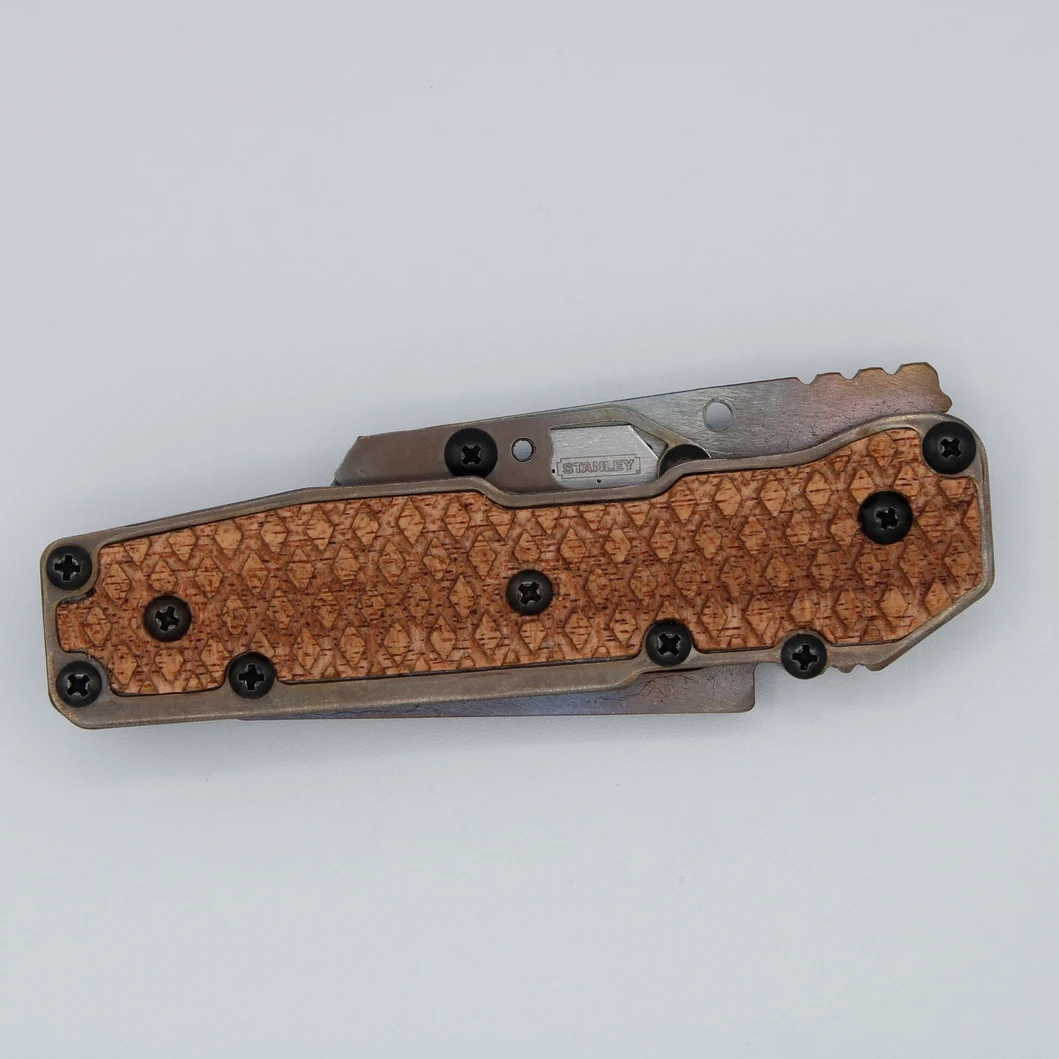 Folding utility knife and tool made with Titanium and African Mahogany