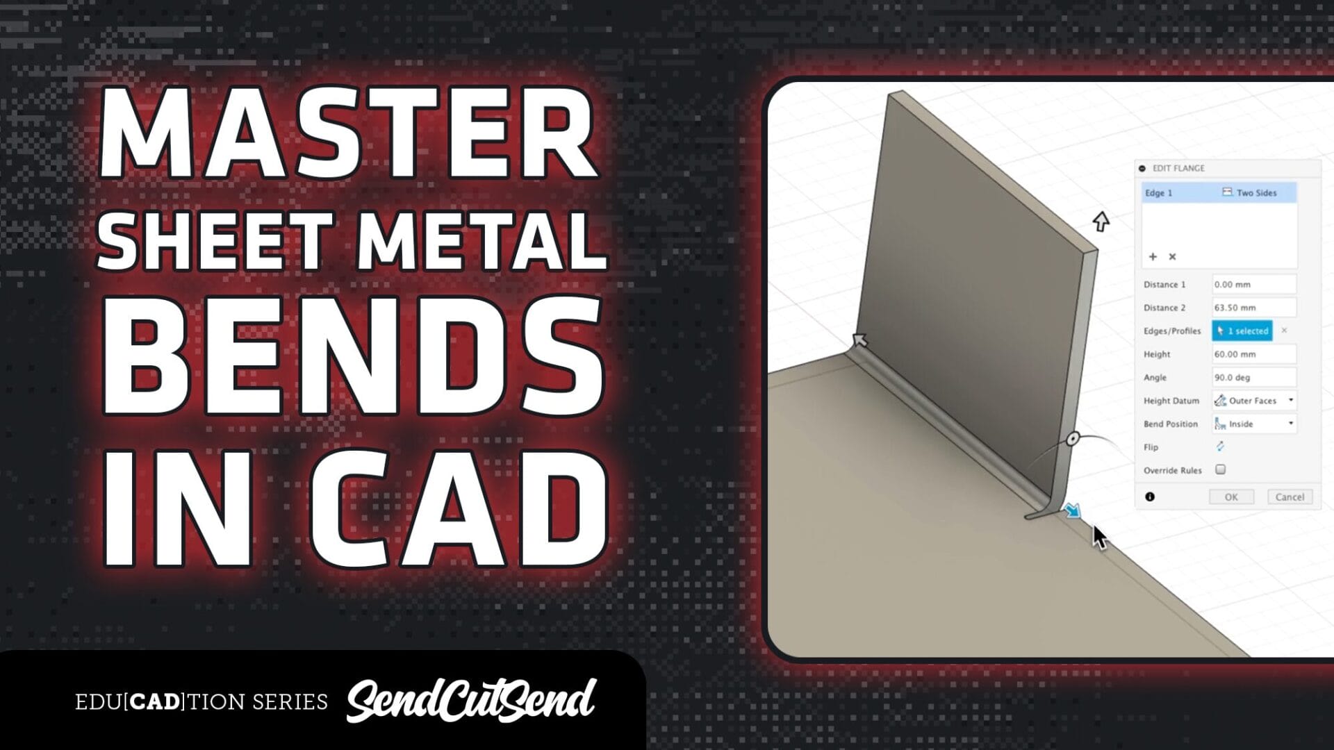 In this hands-on lesson, Jake takes everything you’ve learned about bending and shows you exactly how to apply it inside CAD. Using Fusion’s sheet metal tool, he walks through setting up proper sheet metal components, applying SendCutSend’s sheet metal rules, and adjusting critical parameters like material thickness, bend radius, K-factor, and relief types.